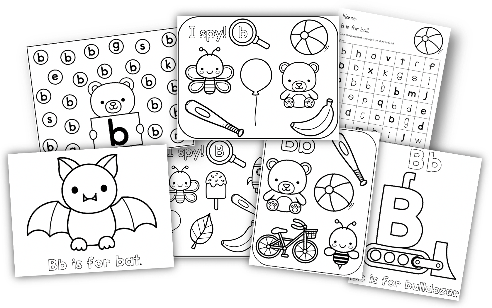 This resource is packed with fun, hands-on printables to help your students learn the letter B. Included are two different I-spy coloring pages, a beginning sounds coloring page, and “B is for Bulldozer” and “B is for bat” coloring sheets. There is also a torn paper craft template for the letter B and a find the letter B maze which can be colored or used with dot markers. Perfect for building fine motor skills, letter recognition, and early phonics in an interactive way.