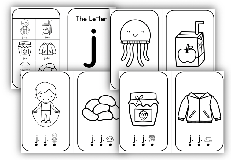 This Letter J Beginning Sounds Book with finger-tracking dots is a wonderful tool. It helps your preschool students develop early reading skills. This interactive book encourages your students to follow along with their finger as they read. It reinforces phonemic awareness. This activity also enhances fine motor skills and print tracking.