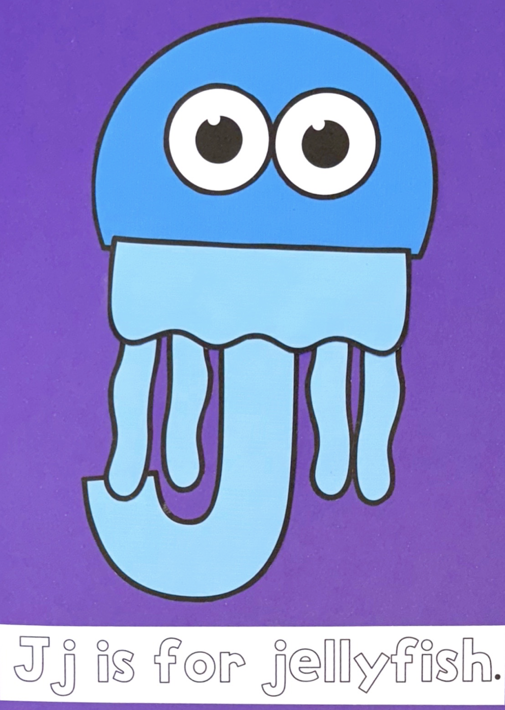 This resource includes four different craft options for your alphabet activities. J is for jellyfish, using the capital letter J and a jellyfish craft, and J is for jaguar, using the letter j and a jaguar craft.