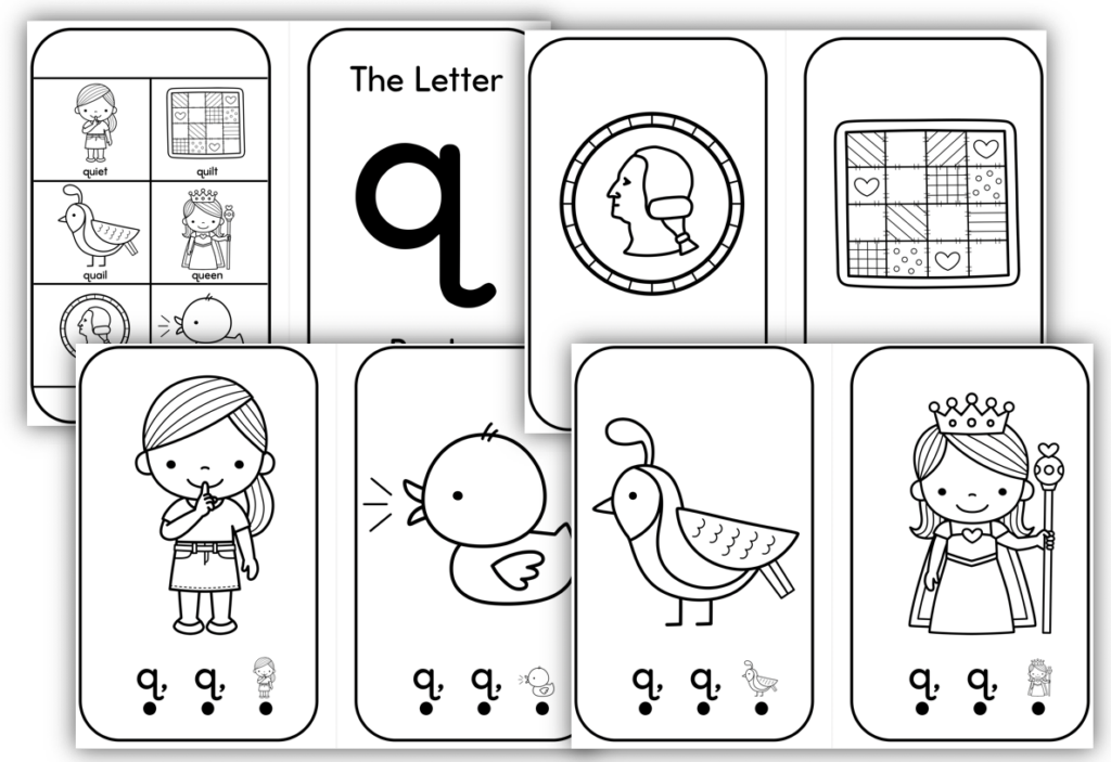 This Letter Q Beginning Sounds Book with finger-tracking dots is a wonderful tool. It helps your preschool students develop early reading skills. This interactive book encourages your students to follow along with their finger as they read. It reinforces phonemic awareness. This activity also enhances fine motor skills and print tracking.