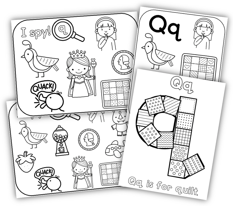 This resource is packed with fun, hands-on printables to help your students learn the letter Q. Included are two different I-spy coloring pages, a beginning sounds coloring page, and “Q is for queen” and “Q is for quilt” coloring sheets. There is also a torn paper craft template for the letter Q and a find the letter Q maze, which can be colored or used with dot markers. Perfect for building fine motor skills, letter recognition, and early phonics in an interactive way.