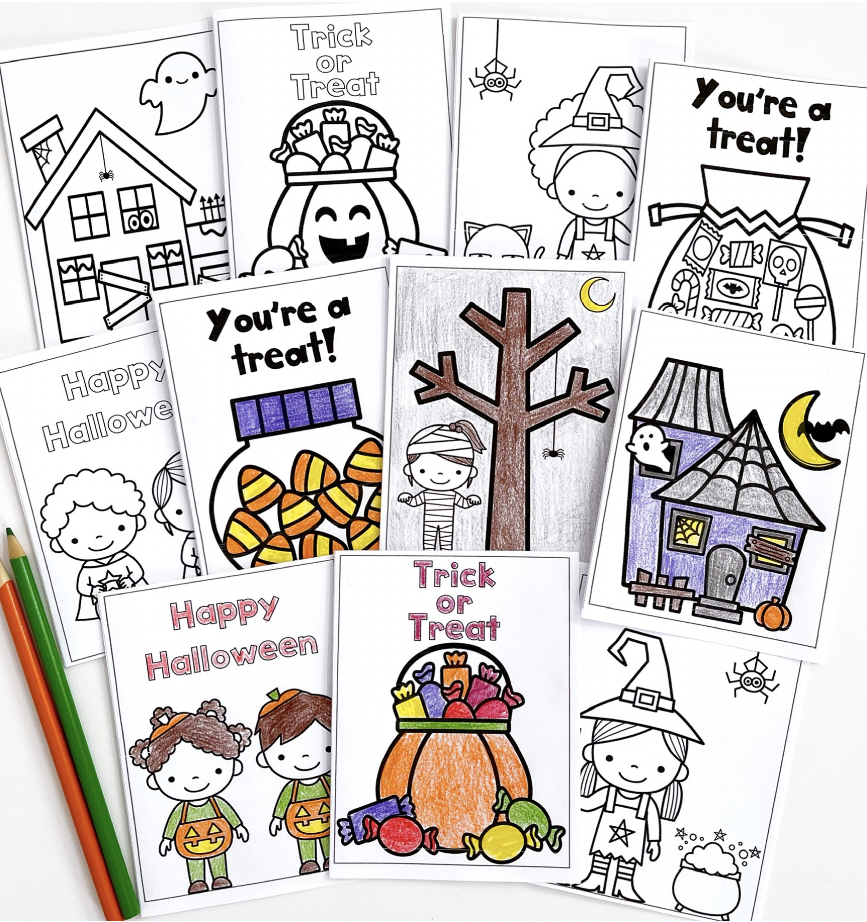 Halloween Coloring Cards for Halloween Party Activity