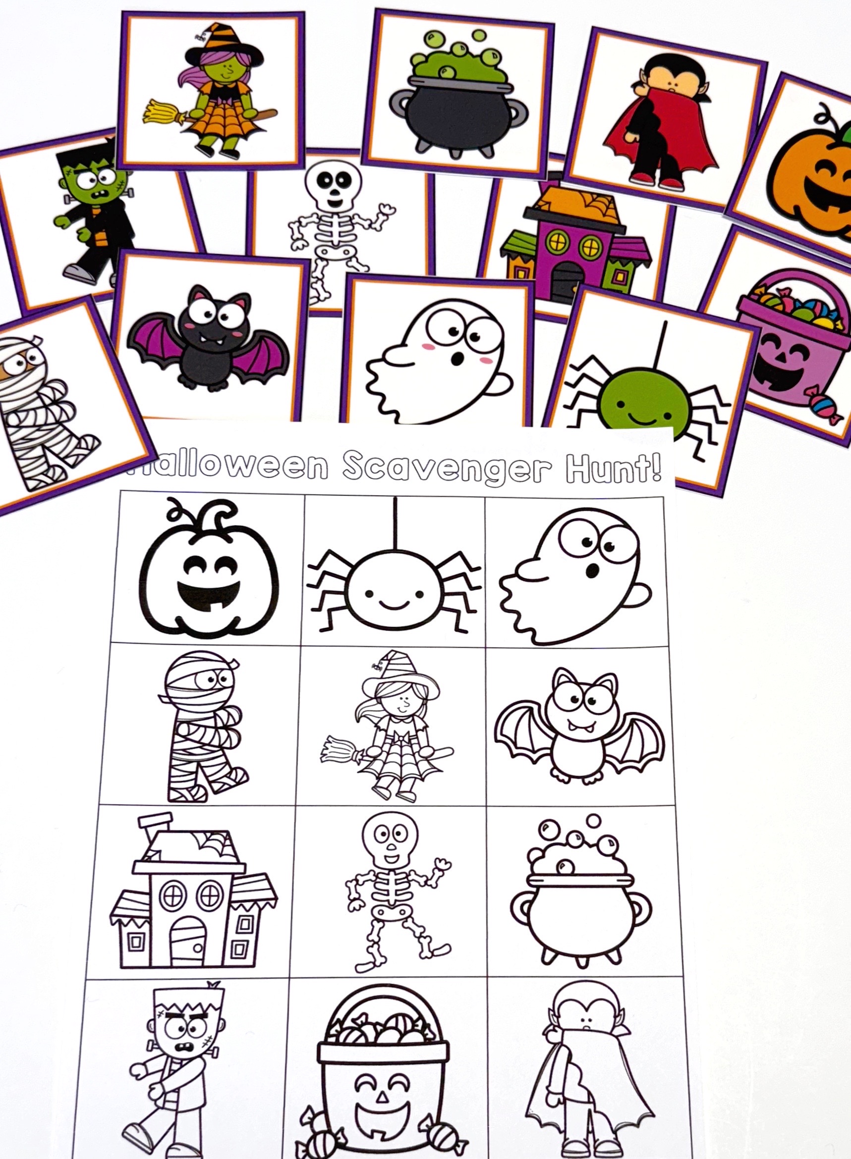 Bring extra excitement to your preschool Halloween party with this Halloween scavenger hunt! Encourage your students to explore the classroom while searching for these Halloween-themed items. It’s perfect for classroom centers, indoor parties, or outdoor play. Simple to set up! Hang up the Halloween-themed cards and provide the printable and crayons or markers. This spooky scavenger hunt adds the perfect touch to your Halloween celebration! Download here!