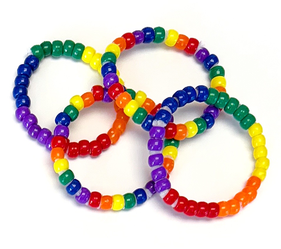 Pony bead rainbow bracelets are such a fun and simple activity for preschoolers! Provide colorful beads and create rainbow patterns. This activity builds fine motor skills, color recognition, and patterning skills while working on hand-eye coordination.
